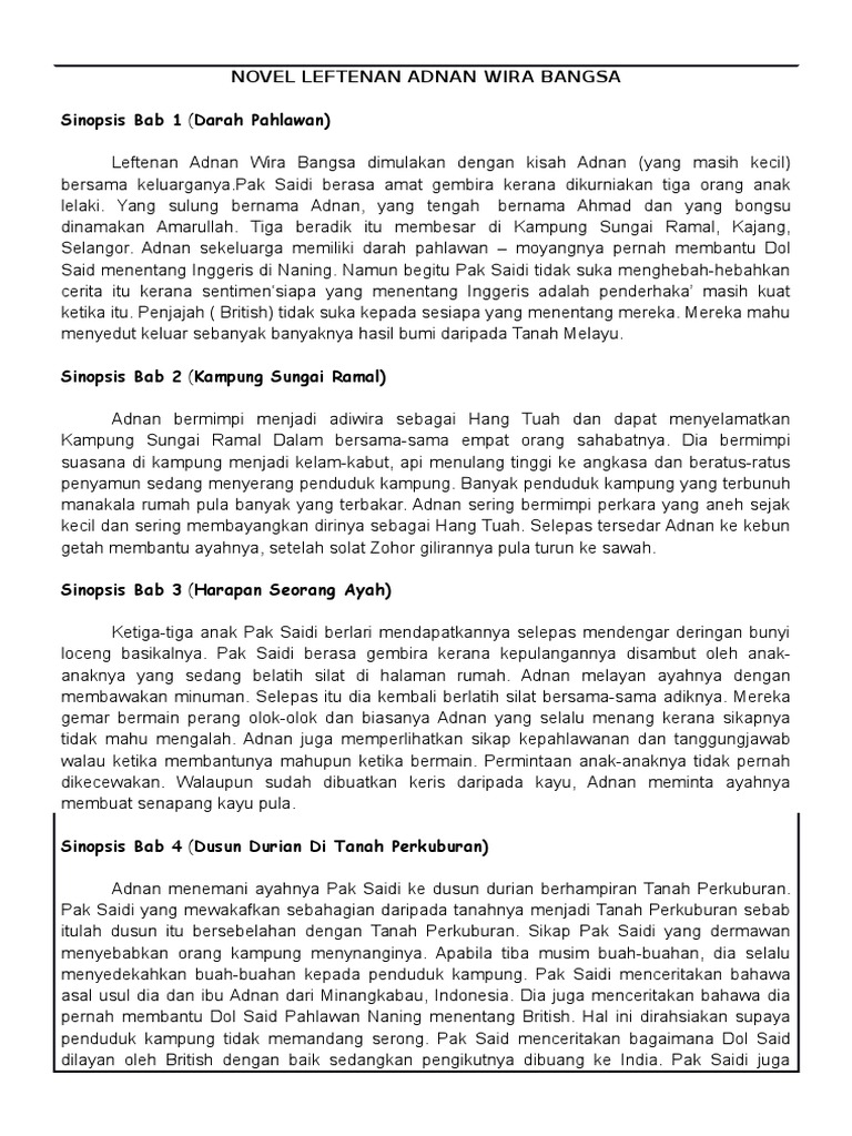 Sign in Tingkatan 4 Novel Leftenan Adnan Wira Bangsapdf - Google Drive. Novel leftenan adnan wira bangsa 8 novel papa 3 novel tirani 4 peribahasa 10 rumusan dan pemahaman 3 tatabahasa 28 blog archive 2011 71 june 3 july 10 august 31 september 25 october 2 2012 37 august 5 september 26 peperangan - natijahnya. Yang sulung bernama adnan yang tengah bernama ahmad dan yang bongsu dinamakan.