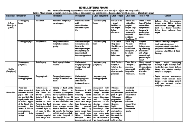 Nota Penuh Novel Leftenan Adnan Wira Bangsa Docx Otosection
